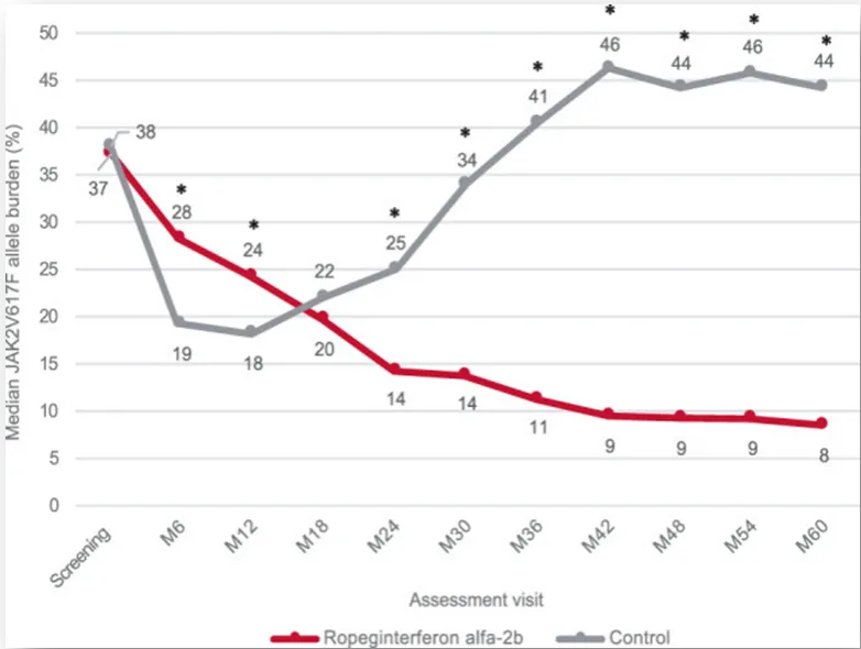 [4] Kiladjian JJ, Klade C, Georgiev P, et al. Long-term outcomes of polycythemia vera patients treated with ropeginterferon Alfa-2b. Leukemia. 2022;36(5):1408-1411.