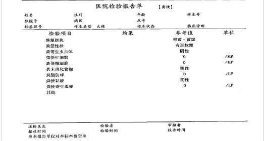(2)红细胞:上消化道出血、下消化道炎症(如细菌性痢疾、阿米巴痢疾、溃疡性结肠炎)、外伤、肿瘤、肠息肉及其他出血性疾病等。