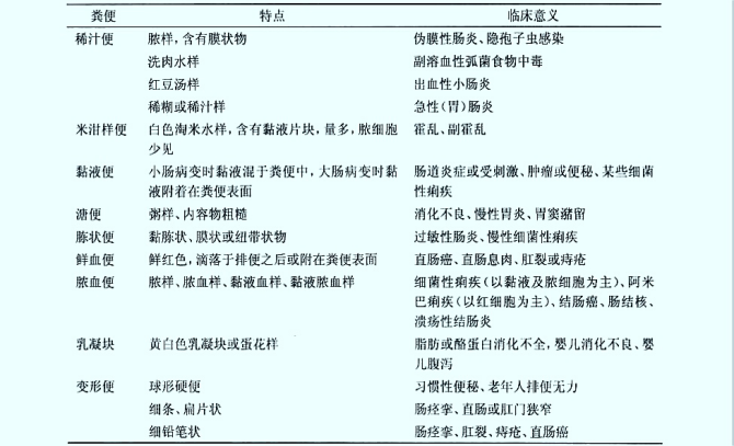 ②血性黏液附于粪便表面,提示肿瘤或肠壁的炎症。