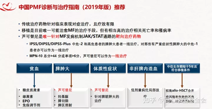 目前PMF常用推荐药物为芦可替尼、干扰素和羟基脲,但是我个人在临床中强调中西医结合治疗。如果患者无法耐受西药,或经济条件不允许,可给予患者中医支持治疗。
