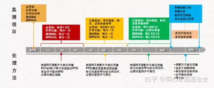 但是,芦可替尼的治疗有严密的治疗监测于管理流程,患者需要遵医嘱合理用药,不可自行停药、换药、更换药物使用量。用药期间,需要定期进行指标监测,根据检查,临床主治医生会制定相应的临床对策,及时进行药量的调整。