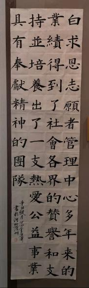 在他们的帮助下,父亲的身体越来越好,家里所有人也越来越有信心。也是在他们的帮助下,我也学着志愿者,帮各地病友做一些力所能及的事。我总想着,爱是一场接力,过去那么多人帮助父,现在我也要帮助更多的人。今年过年时,我还特意让女儿写了一副字,表达我们全家对他们的感激之情。