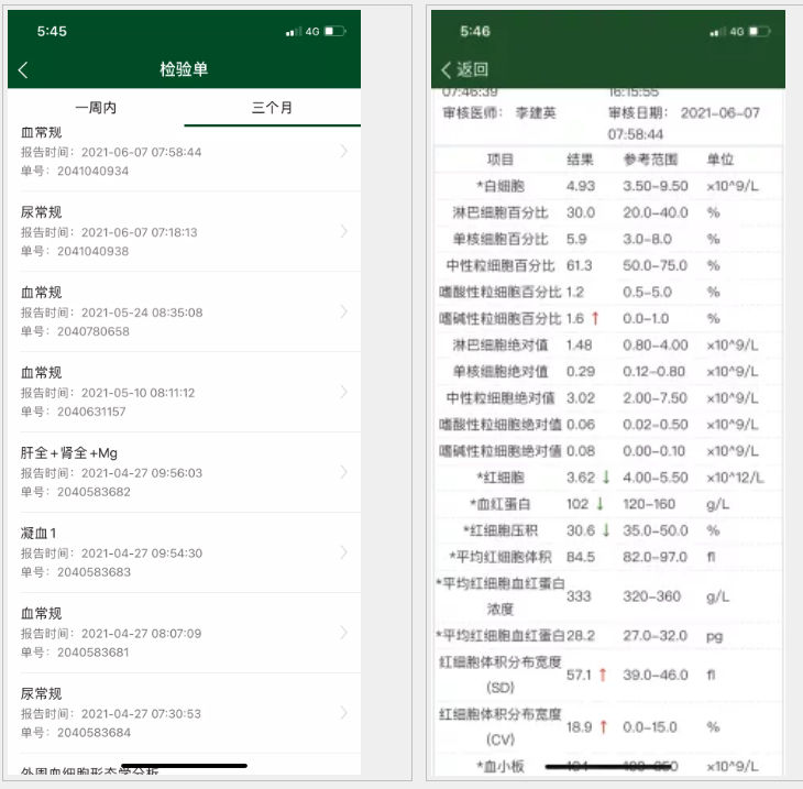 5月10日,公公服药两周后,我们回到北京协和医院做相关检查。结果显示:白细胞由原来的2.92升到3.41;血红蛋白由原来的65升到93;让我们全家看到希望!