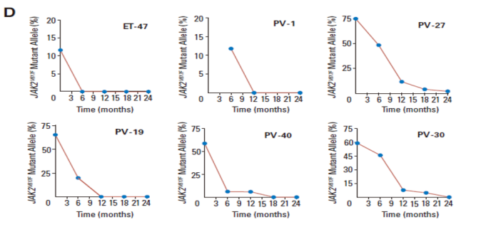 图1:干扰素诱导JAK2V617F突变阴转案例