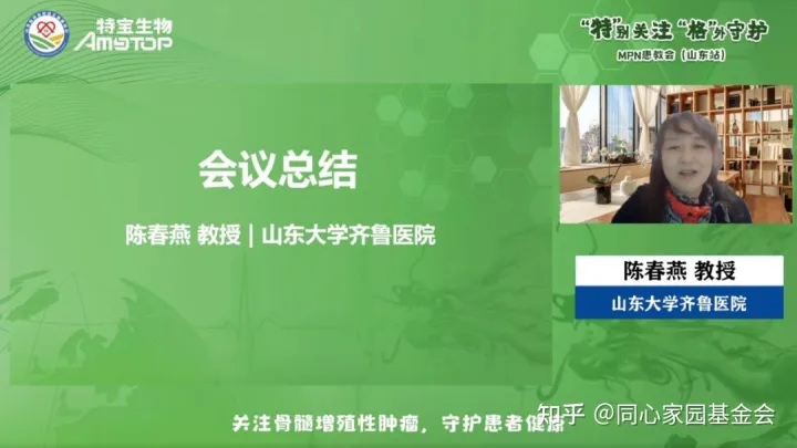 最后,陈春燕教授对会议进行总结,再次肯定了会议对患者的实际意义及积极作用。对本场疾病科普分享和互动作出高度好评,并相信很多病友们对原发性血小板增多症有了更深刻的认识。同时,也希望大家参会后,能高度重视自身疾病,提高就医依从性,定期复查,定期随访,全病程管理,才能及时遏止病情进展。