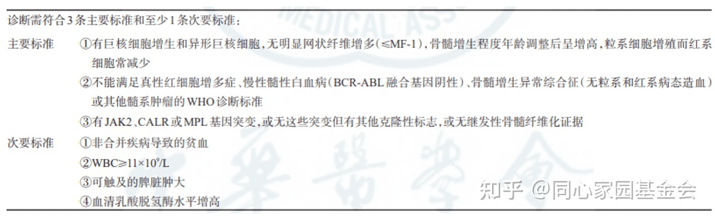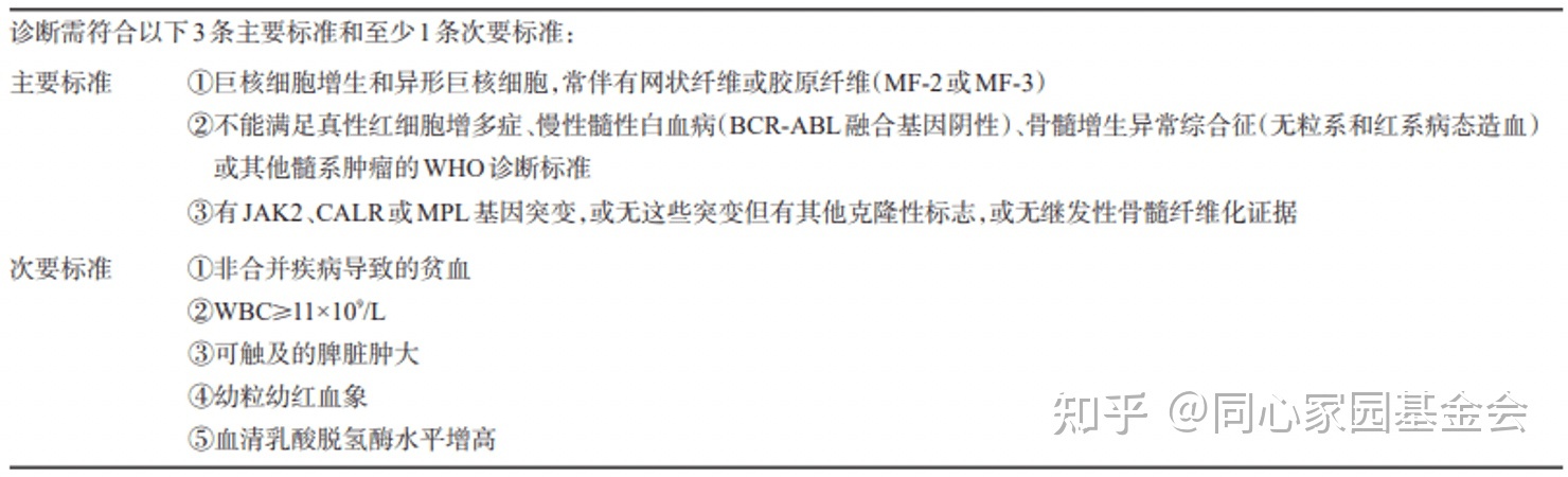 ▲ 纤维化前/早期原发性骨髓纤维化诊断标准