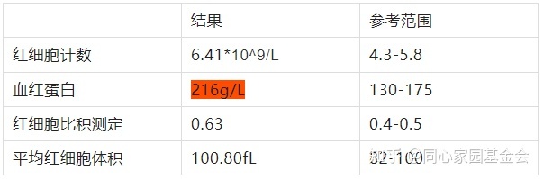 考虑真性红细胞增多症可能,第二天复查血常规结果如下:
