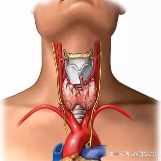 甲状腺是人体内分泌系统中最大的内分泌腺,它位于颈前部,棕红色,呈“H”形,重约25g;由左右两叶、峡部及锥状叶组成。因形似蝴蝶,犹如盾甲,故以此命名。