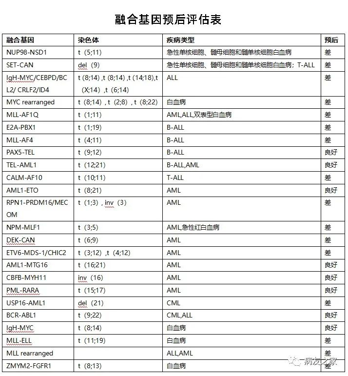 融合基因检测有助于白血病治疗和预后判断:急性白血病如PML/RARA,CBFB/MYH11,AML1/ETO等融合基因预后较好,化疗完全,缓解率高,可长期缓解或治愈,不主张早期做造血干细胞移植。而对于有MLL异常、MYC/IgH融合基因的AML,BCR/ABL融合基因的ALL对化疗反应差,复发率高,建议其有条件应积极进行造血干细胞移植。