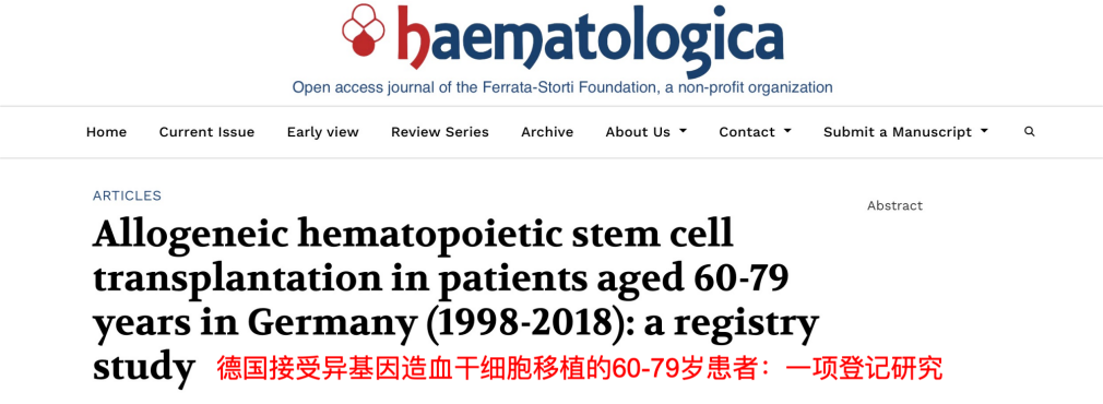 异基因造血干细胞移植(allo-HSCT)是一种治疗血液系统疾病重要的手段,往往需要通过大剂量放化疗(常常为致死量)或合并免疫抑制剂治疗清除患者体内异常细胞后再输入自己或他人造血干细胞,重新建立造血功能和免疫功能。也是唯一能够从根本上治疗白血病,骨髓增殖性肿瘤、再生障碍性贫血等疾病的手段,在临床中具有很关键的地位,而在某些疾病中,往往不建议年龄过大的患者接受这种治疗,因为其并发症严重的甚至能致死,并且治疗过程艰难。一项研究分析了德国接受allo-HSCT的老年患者远期生存率,一起来在科学研究中看看结果吧!