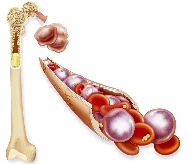 Q: 什么是骨髓? A: 骨髓是各类血细胞的“制造厂”,是人体内最大、最主要的造血组织。骨髓充填于骨髓腔和骨髓松质网眼内,分为红骨髓和黄骨髓两种。红骨髓有造血功能,黄骨髓有大量脂肪组织。随着年龄增长,髓腔内的红骨髓逐渐被黄骨髓代替。红骨髓保留于椎管、胸骨、肋骨、锁骨、肩胛骨、髂骨、颅骨、股骨和肱骨上端的松质内,是人体主要的造血器官。